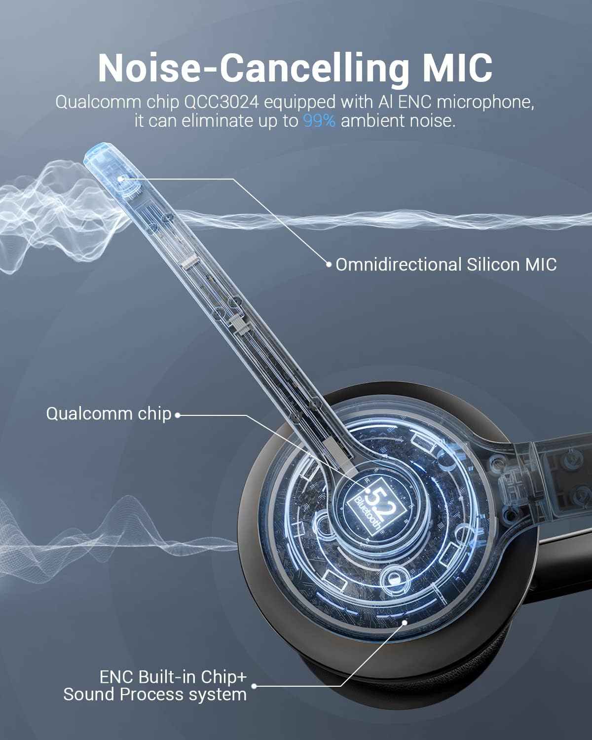 Stay connected seamlessly with this cutting-edge Bluetooth V5.2 headset that offers unparalleled sound quality and convenience. Equipped with an AI-powered noise-canceling microphone, you can enjoy distraction-free calls and crystal-clear voice transmission, making it perfect for work calls, online meetings, gaming, and more.